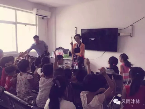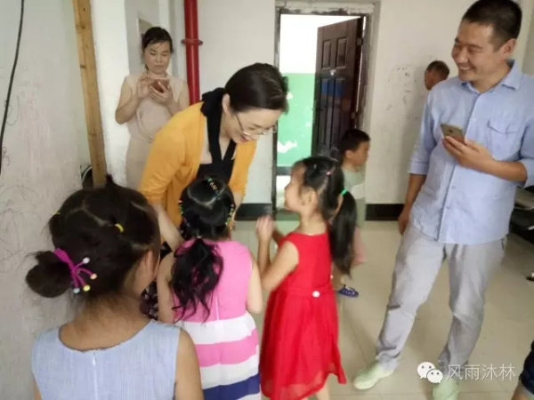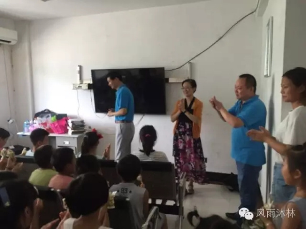 當(dāng)翁總裁和陳書記來到暑期活動室,小朋友們正在興致勃勃地看動畫片。黨員干部的到來引起了小朋友們的注意,看到翁總裁和陳書記一行的到來,小朋友們很是開心。