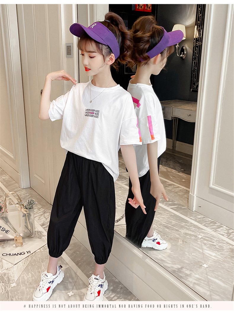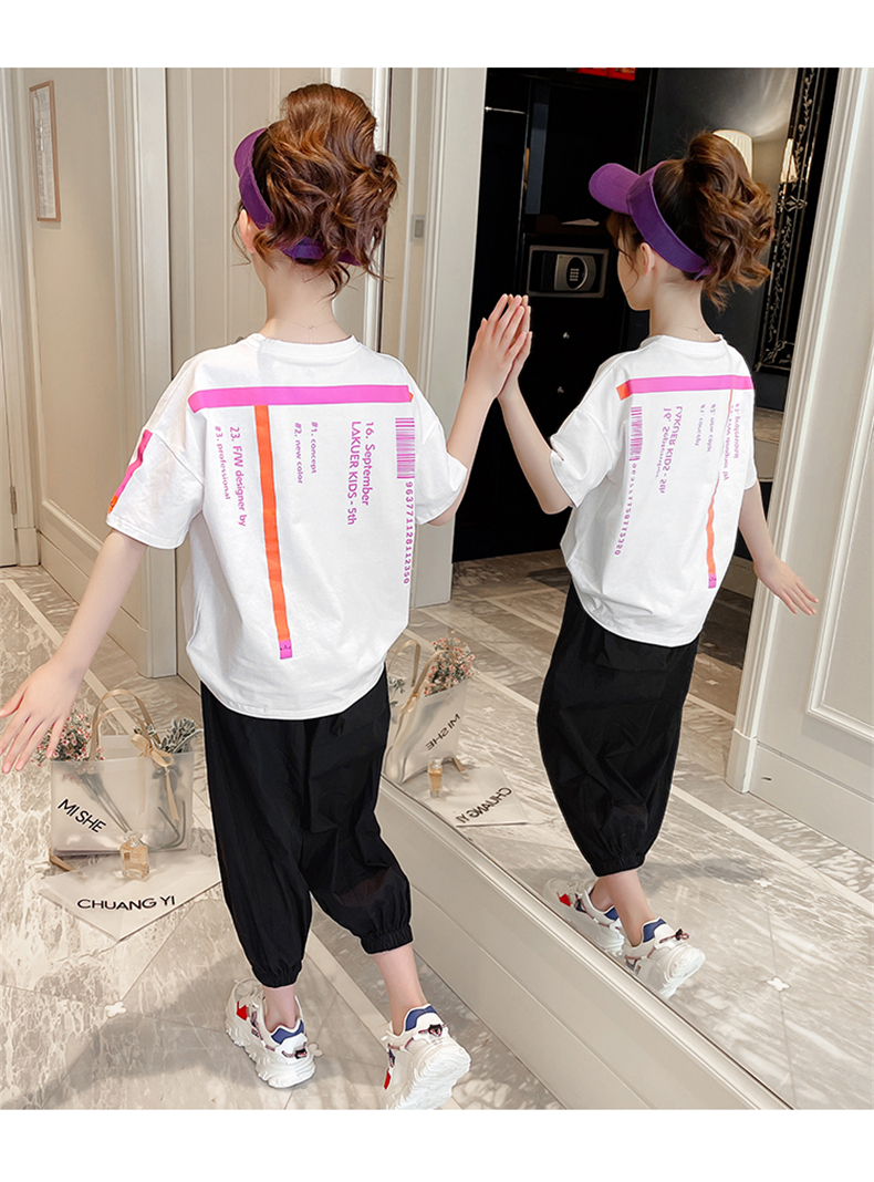 女童夏裝網紅套裝洋氣2021新款韓版時髦大童裝兒童短袖休閑兩件套