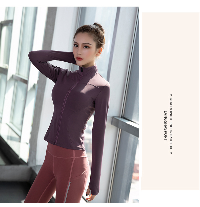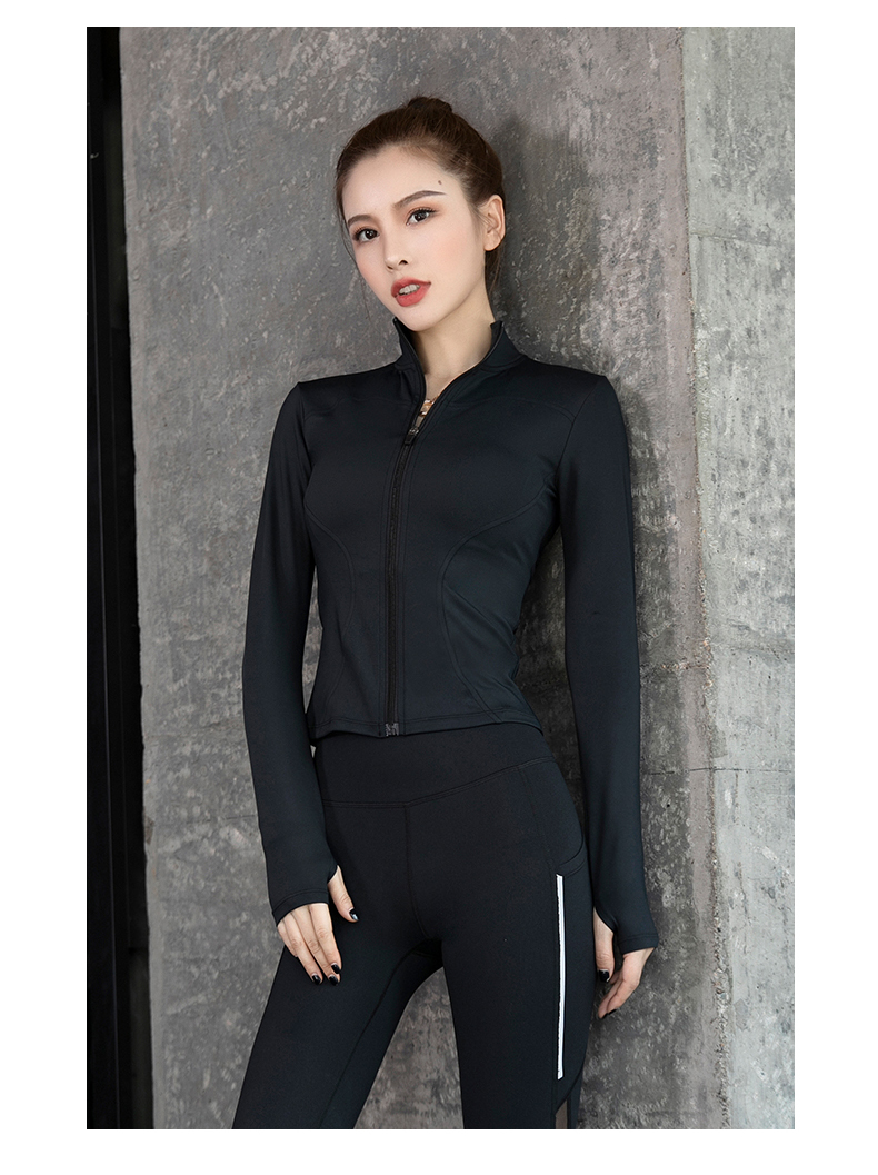 浪莎健身衣女緊身跑步速干拉鏈秋冬戶外立領黑色瑜伽長袖運動外套