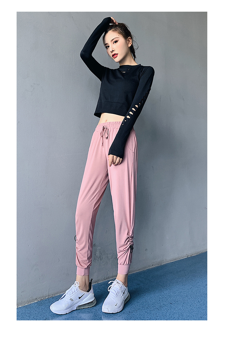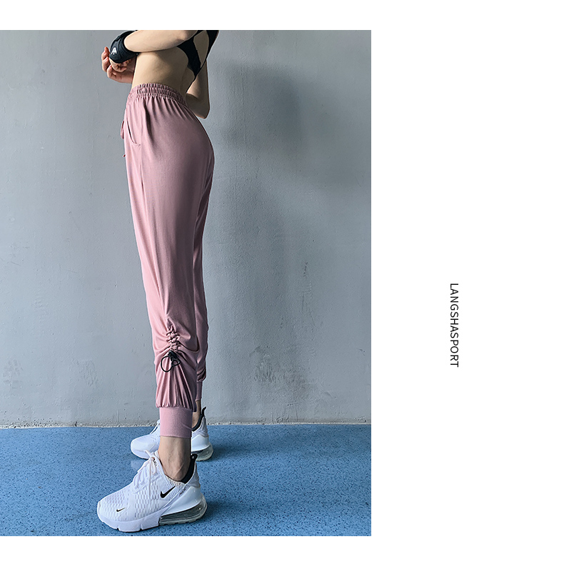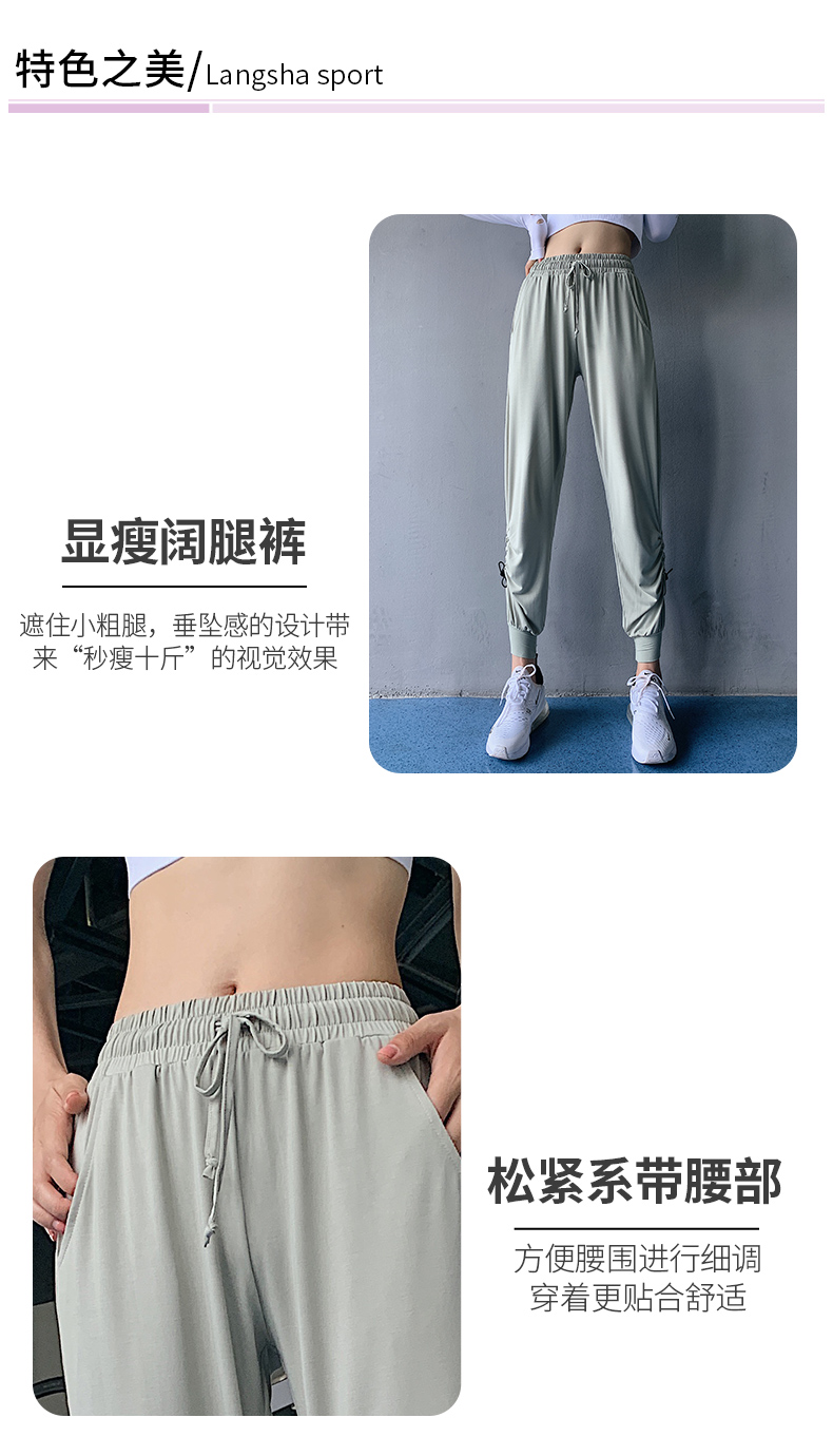 特價浪莎健身褲女寬松束腳收口跑步舞蹈薄款速干高腰瑜伽褲運動褲