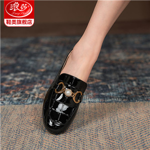 包頭半拖鞋女2021年新款夏季厚底外穿中跟懶人穆勒鞋時(shí)尚漆皮涼拖